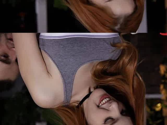Redhead girlfriend Amarna Miller lifts her miniskirt to ride