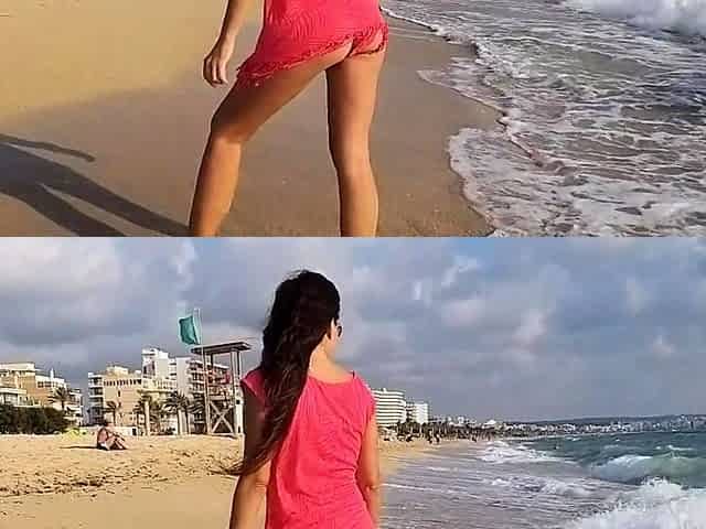 Flashing Hairy Pussy by Taking Off Panties at the Beach Suns