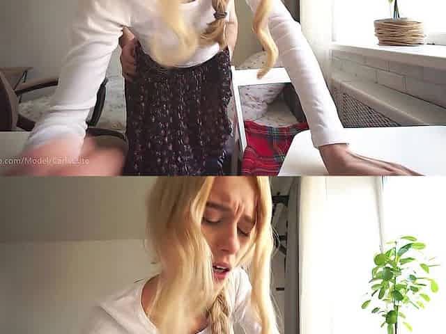 Blonde Girl Sucks A Massive Cock Then Gets Fucked With A Lace Panty On With Antonia Deona