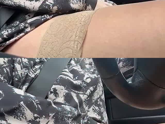 Horny Wife in Stockings Masturbates in Car in Traffic Through Panties While Driving