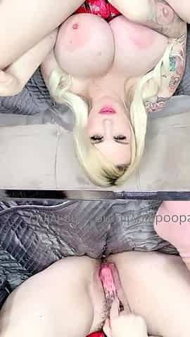 Blonde with big boobs fucked from behind before tit wanking