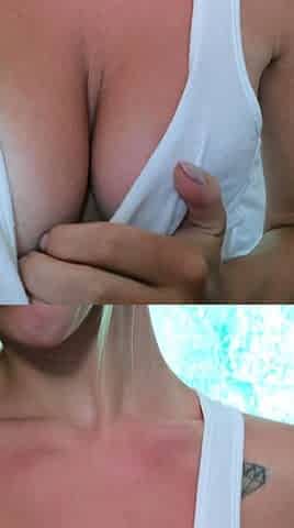 Scarlett, busty blonde, showcases her big natural tits in steamy action.