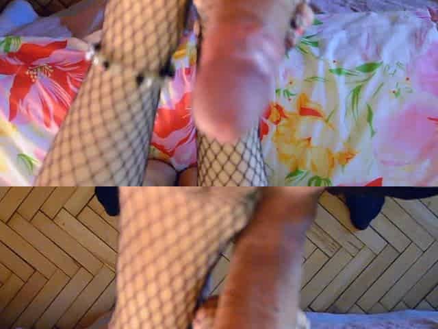 shows nylon feet to the camera and masturbates with fingers