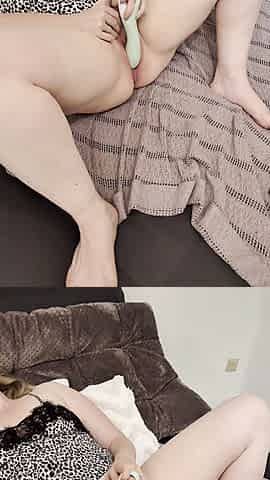 Turned on mature lady masturbating with panties and toys