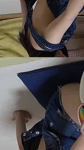 Natural Big Tits Spill Out From No Bra Denim Mini Skirt Overalls, Wedgie Micro Thong Panties, japanese Girl's Erotic Exercise