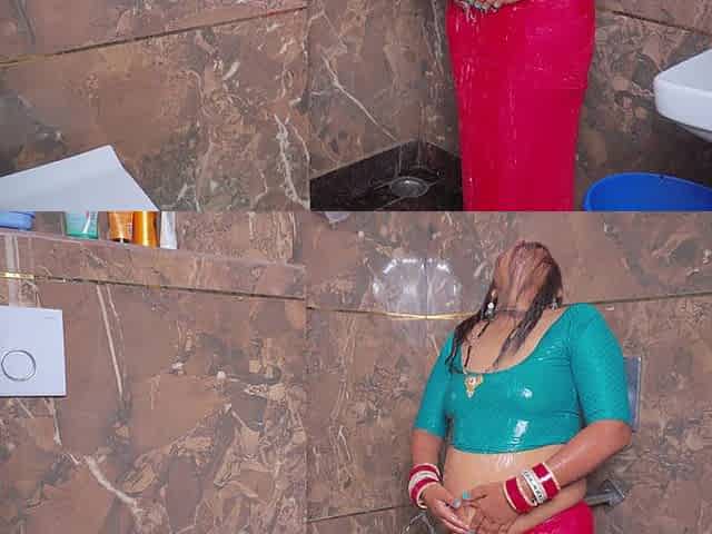 After Suhagrat- Newly Married Pinki Bhabhi Stripping Saree in Bathroom, She Fucked Hard and Got Cum in Pussy with Hindi Audio.