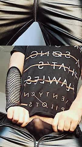 Femboy in Leather Panties Shows Off His Ramrod