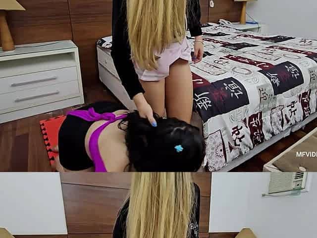 Long-haired pornstars Emma Bugg and Lilly Hall in lesbian fingering and nice ass play