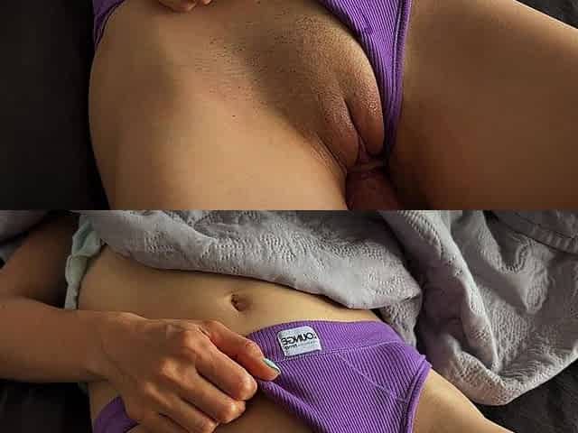 Hottie takes off her panties to finger her wet pussy