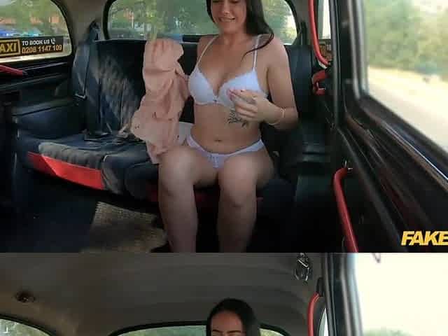 Fake Taxi Cute takes off her cute white brassiere and pants on backseat
