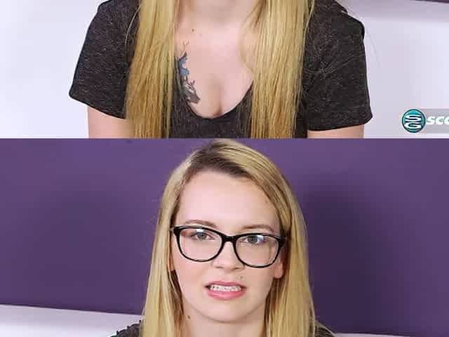 Newcomer blondie reveals her small tits