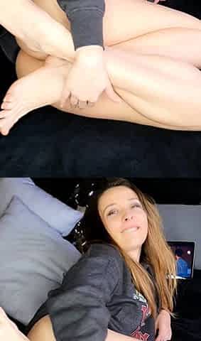 Amateur redhead milf sucking and foot job scene
