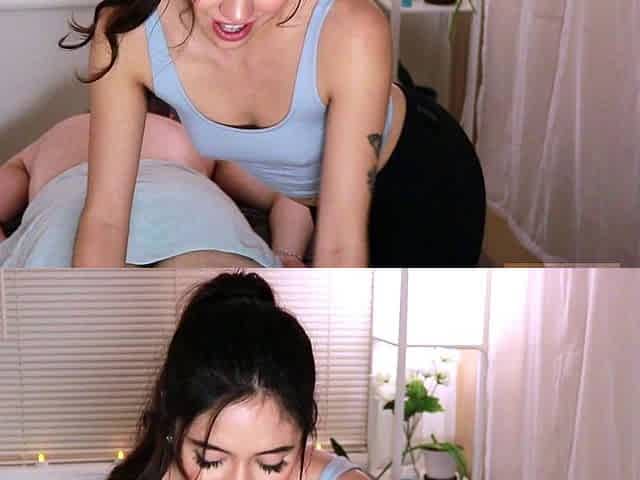 Asian hotties suck group sex