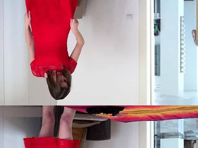 lady tries on her BF's underclothing. Dudes's shirts and panties. Part 1