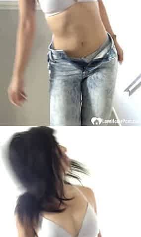 Large booty tiny Oriental cougar undresses and flaunts her curvy skinny figure