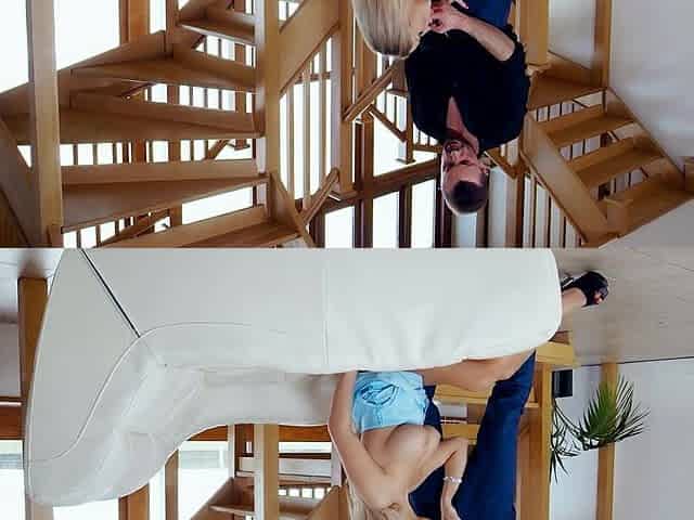 A stunning blonde babe, Sienna Day, shows off her big boobs and ass in this video.