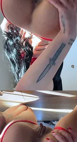 A super sexy brunette massages her big boobs