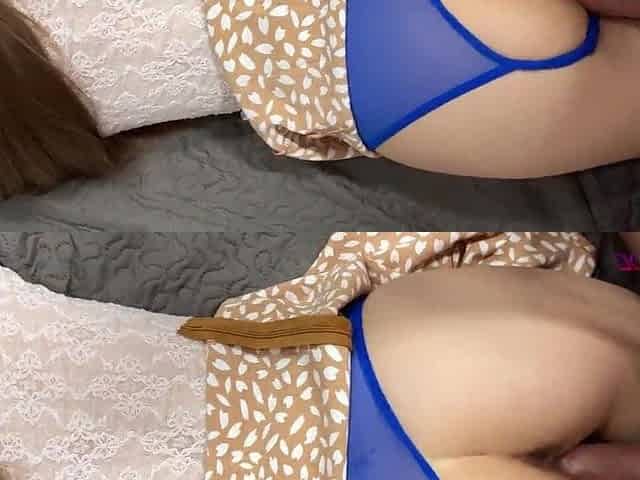 He Lifts His Stepmother's Pajamas and Plays with Her Fat Vaginal Lips