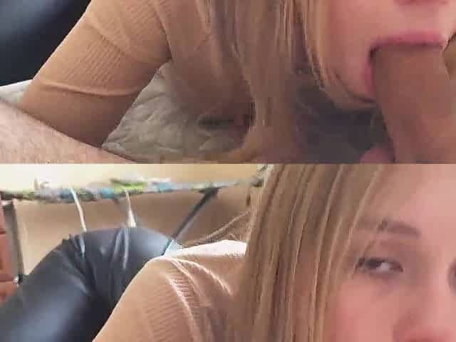 Blonde Braylin Bailey with natural tits sucking a big cock