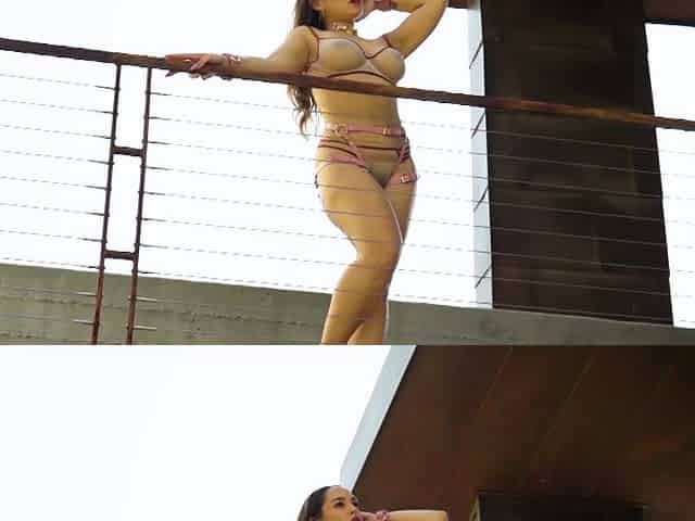 Beautiful brunette Eliana in leather, solo pleasure.