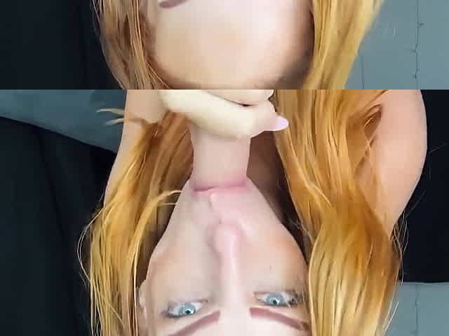 Madison's long hair falls on her face as she gives a blowjob.