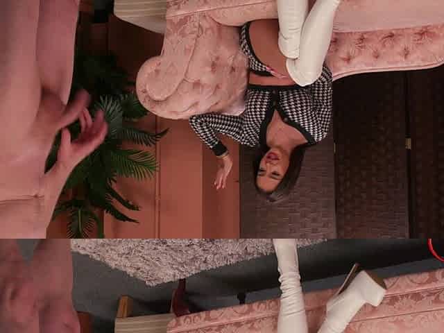 Roxy Richie in hot cfnm action with long hair and high heels.
