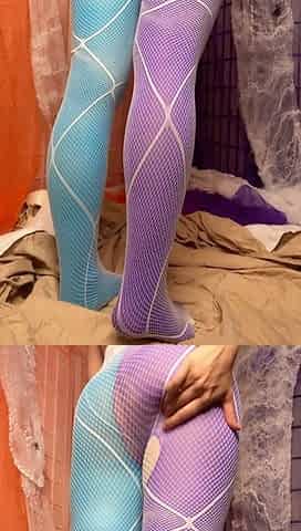 Layered Pantyhose Pee Dressing: Tights, Fishnets and Body Suit - All Together!