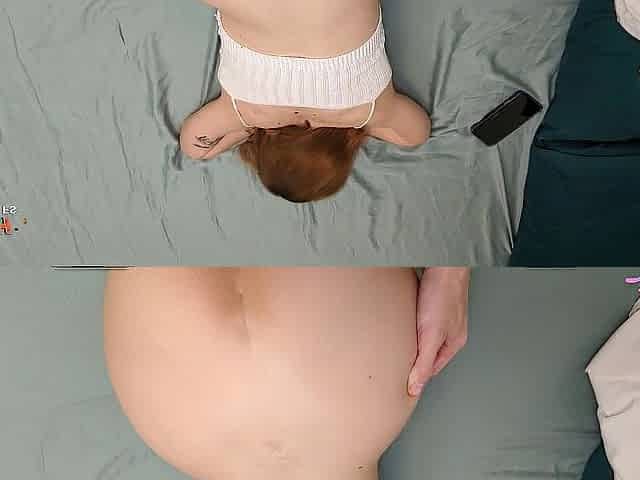 Stepmom with Transparent Leggings Teases, Rubs, Touches and Squirts Stepson's Cock