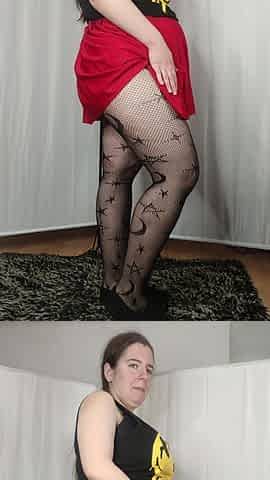 [4k] Patterned Pantyhose and Red Mini Skirt Try on
