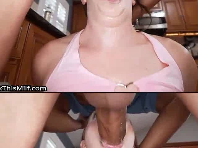 Stepmom Jerks off and Sucks Stepson's Dick in the Kitchen