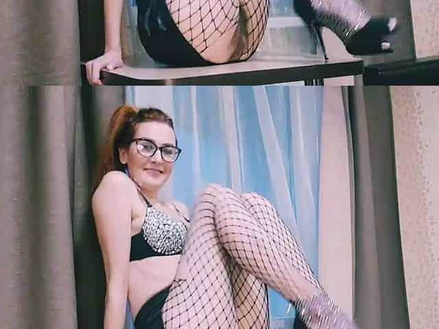 Tecla wearing exposed stockings has feet in your face and shoeplay