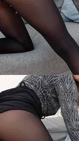 Caressing my wet clit in sheer pantyhose