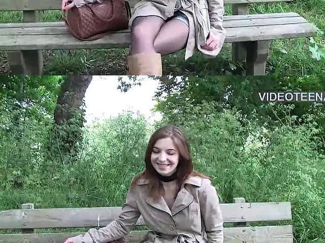 cute 18 year Sandy shows sexy pantyhose during her porn casting