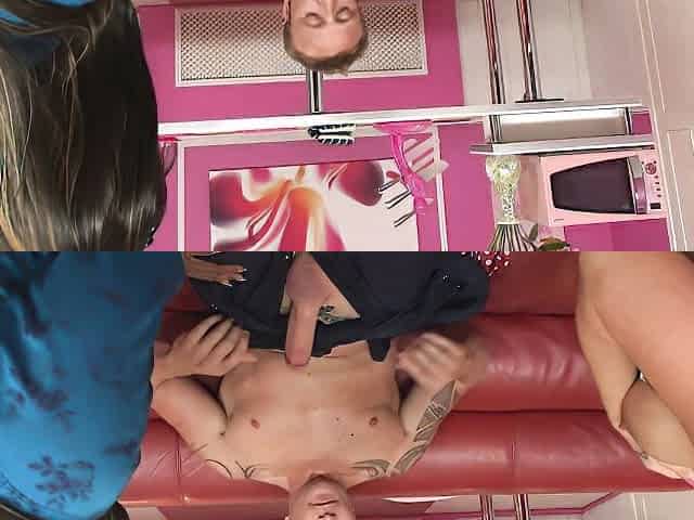 Cassie and Abbey pull their panties aside and get drenched in jizz during wild gang bang