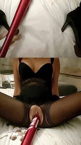 I place in a baseball bat in my twat with my hose open