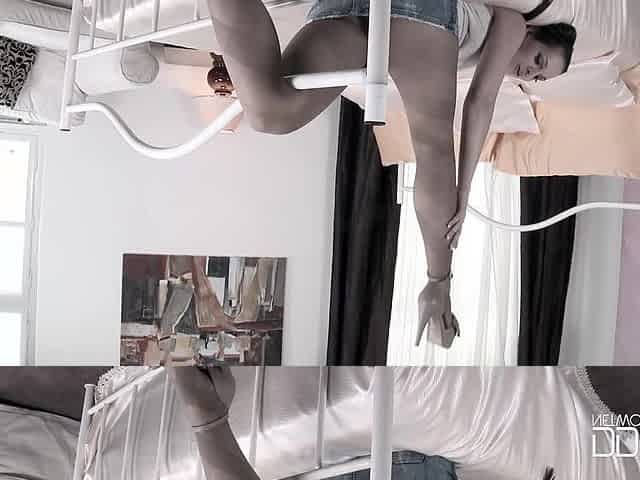 Beautiful brunette Melody Pleasure in hot pantyhose pov scene.