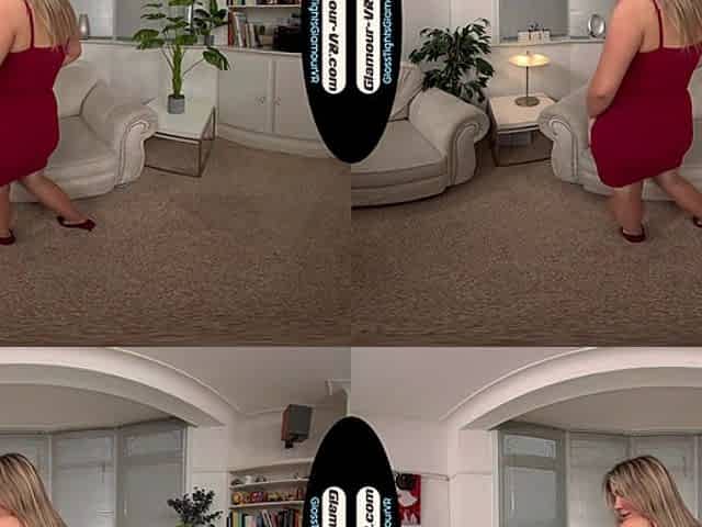 Siobhan Graves Red Party Dress With Tan Glossy Tights/Pantyhose Treat - 8k Vr