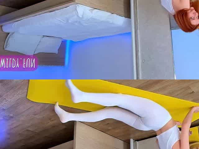 Eighteen-year-old blonde and brunette in white and brown pantyhose strip