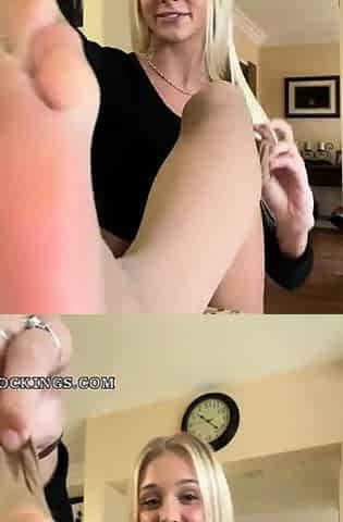 "Hot Blonde MILF Fingering in Sheer Black Pantyhose"