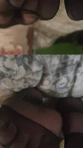 Her sexy black pantyhose makes him cum hard