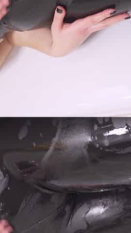 Tights-wearing girl gets facial cumshot after a golden shower scene