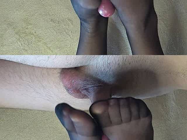 Great footjob in ebony tights!