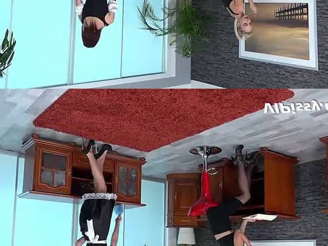 Washing A Little Green Chair - High Heel Fetish Legs Pantyhose French Maid