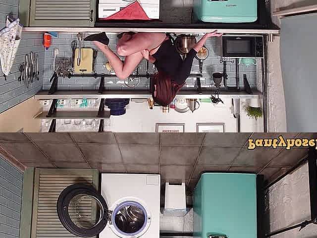Kamilla Fucks Herself Wearing Brown Pantyhose in Kitchen With Dildo