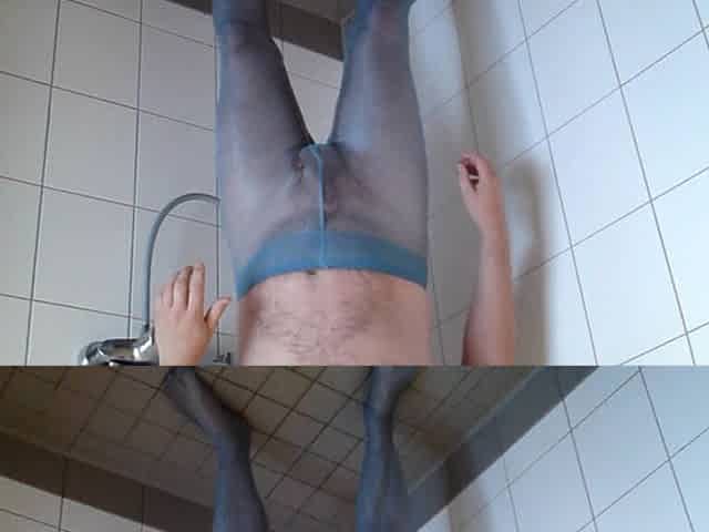Pissing in blue tights