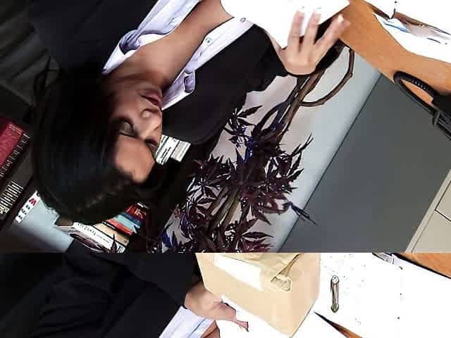 serious business woman in hot leatherskirt and pantyhose bootjob to bosses dick