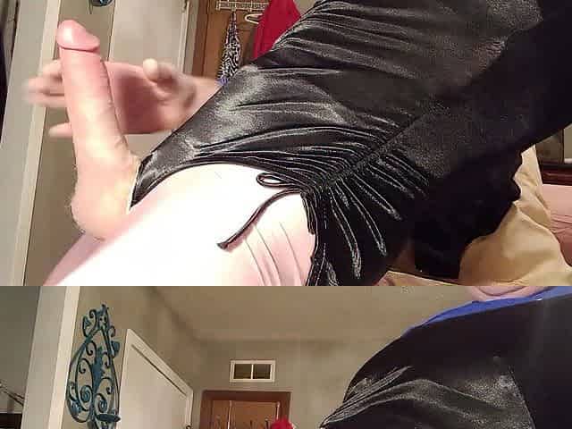 Shiny swimsuit and ANAL make a girly cock expode with excitement!