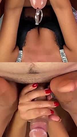 Morning Sloppy BJ with Rd lipshick and blue nylons POV