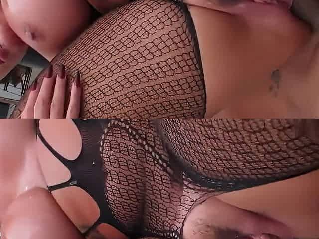 Masturbating My Pussy in Fishnet Tights with My Legs Spread