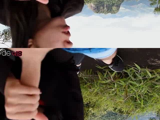 She gives a guy she just met in the park a blowjob and cums in her mouth